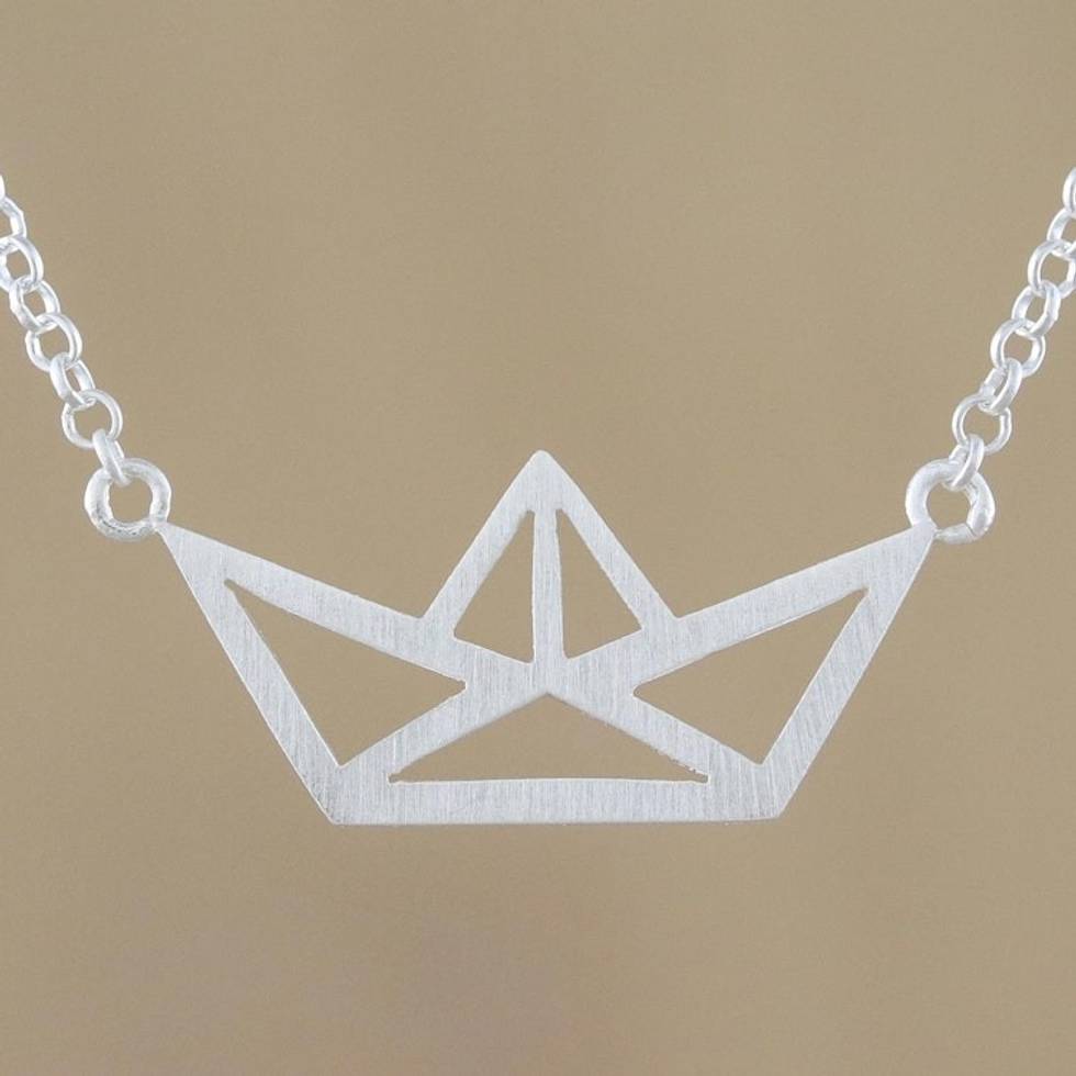 Boat-Shaped Sterling Silver Pendant Necklace from Thailand 'Paper Boat' Item ID: 2671800767