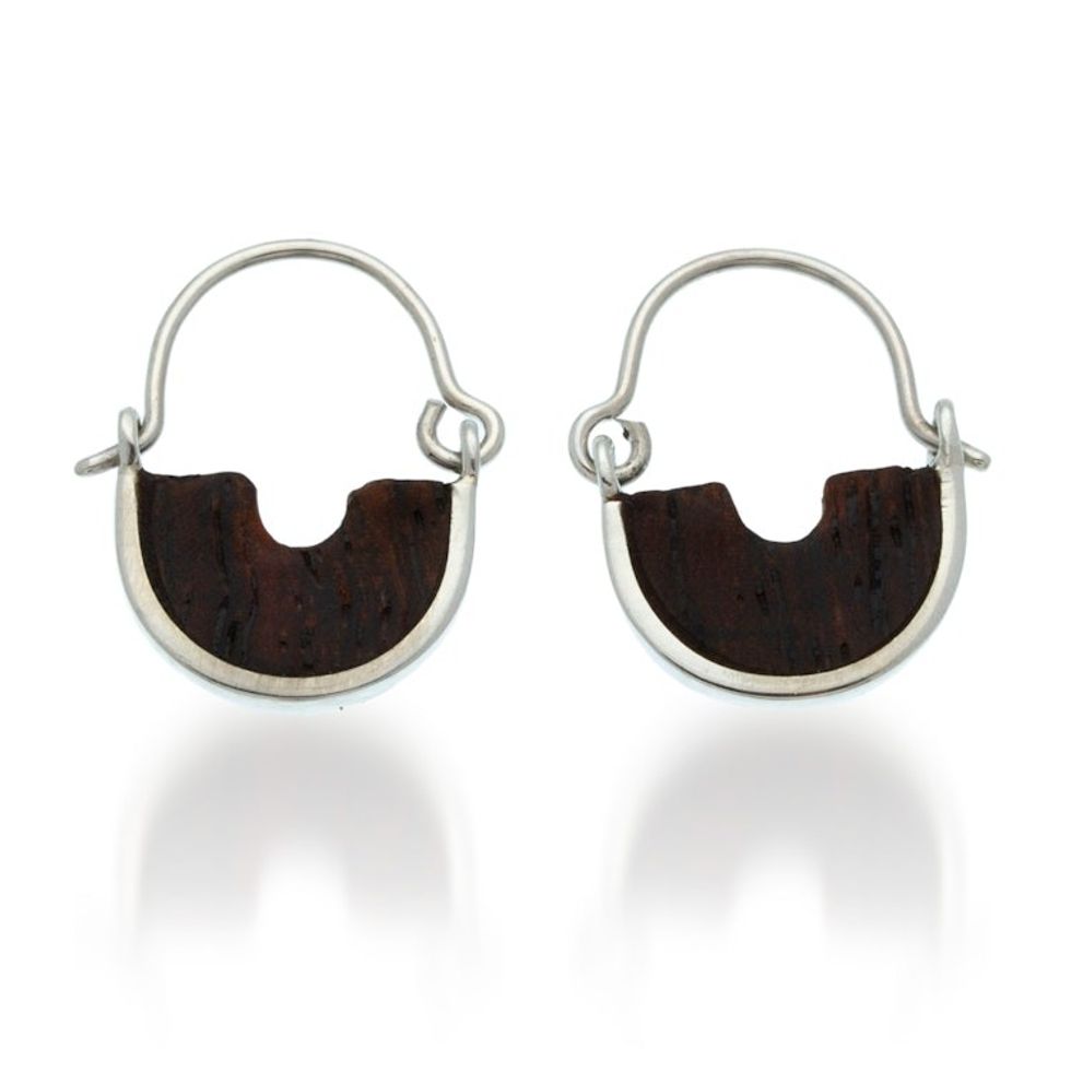 Bocote Wood-Accented Sterling Silver Half-Moon Hoop Earrings 'True Half-Moon' Item ID: 2671798673