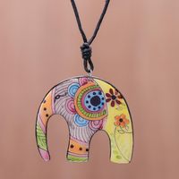 Bohemian Ceramic Elephant Pendant Necklace from Thailand 'Elephant Hippie' Item ID: 2669929641
