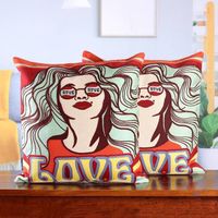 Bohemian Cotton Cushion Cover Pair with Acrylic Embroidery 'Retro Boho' Item ID: 2676663722