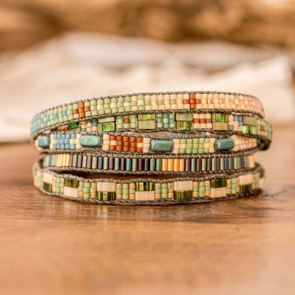 This is such a gorgeous bracelet. I love the variety of patterns and materials and the beautiful details: the woven parts and the lovely muted-colour beads create a pleasing overall effect. A lot of work goes into making these! It is such a fun piece that will be a joy to wear with relaxed, casual outfits. Thank you very much!