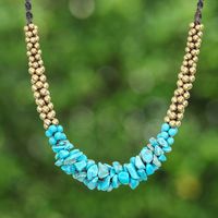Bohemian Pendant Necklace with Howlite Chips and Brass Beads 'Turquoise Orchids' Item ID: 2676652943