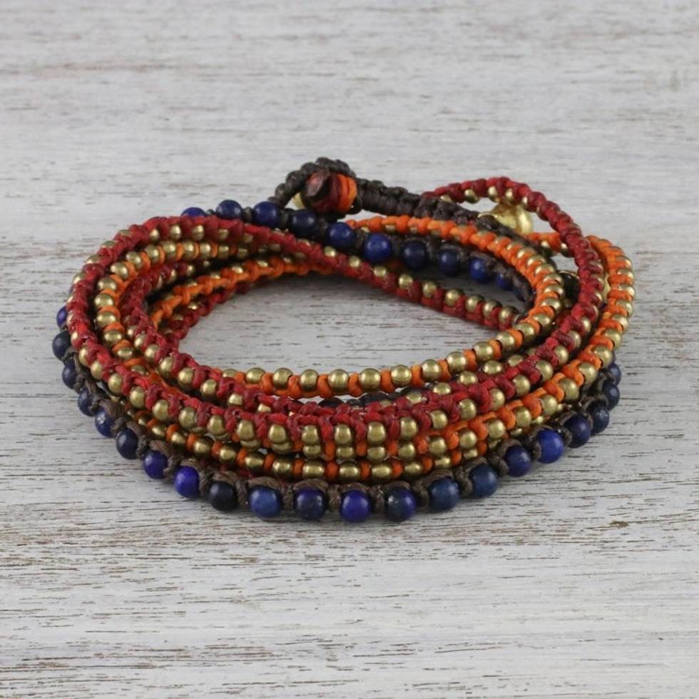 Boho Lapis Lazuli Beaded Wrap Bracelet from Thailand 'Bohemian Bells' Item ID: 2669928606
