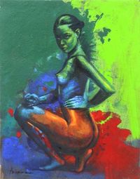 "I don't have a favorite color. I believe colors reflect the variety of life," exclaims the confident artist. "I have fallen in love with the natural beauty of Ubud. The place is so inspiring that it always motivates me to develop my creativity and my painting.