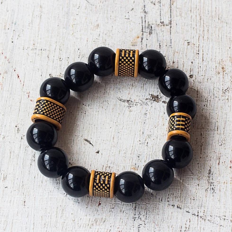 Bold Black and Yellow Recycled Bead Stretch Bracelet 'Madanfo' Item ID: 2671816133