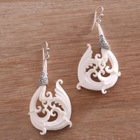 Bone and Sterling Silver Dangle Earrings from Bali 'Temple Frills' Item ID: 2671735744