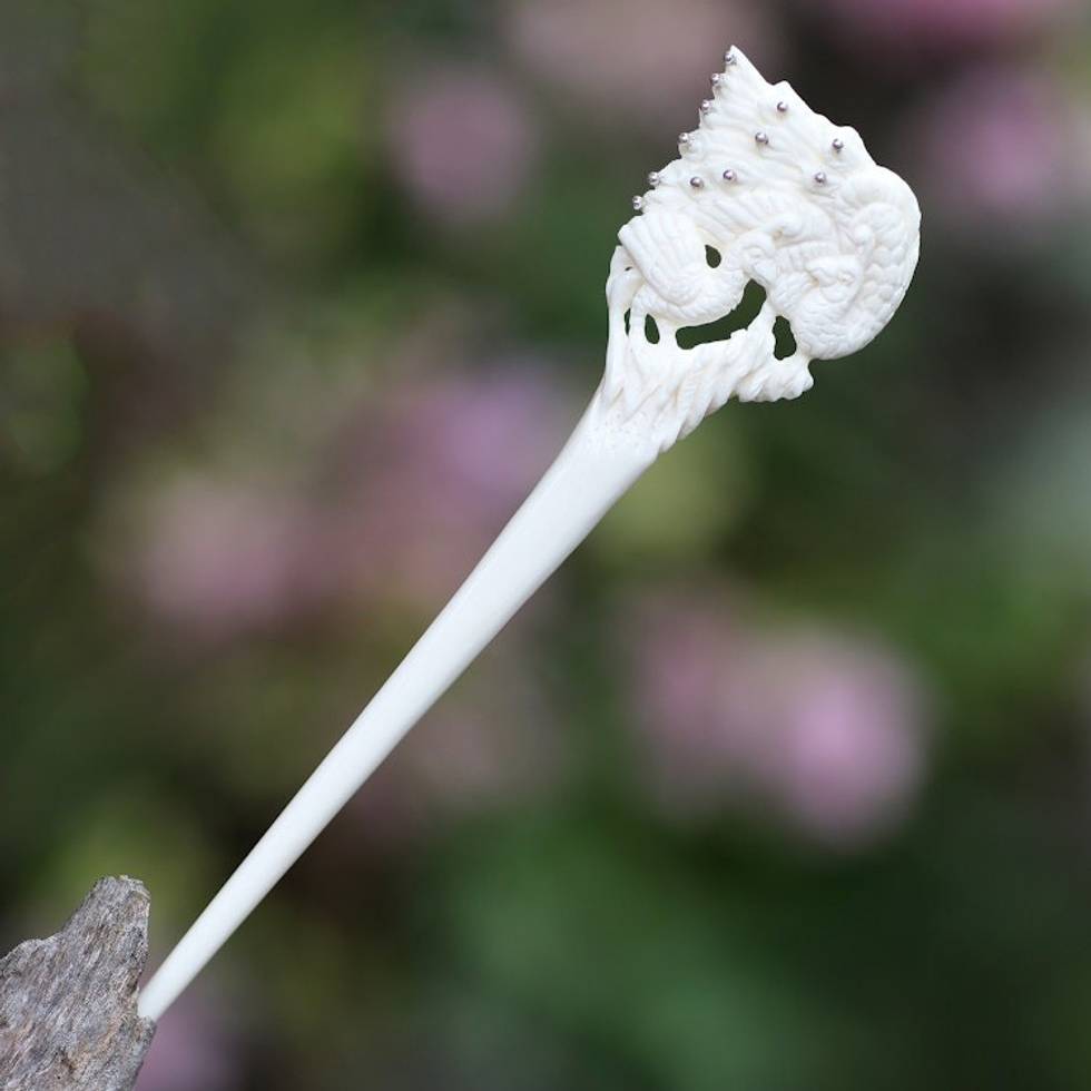 Bone and Sterling Silver Peacock Hair Pin from Bali 'Peacock Love' Item ID: 2669891776