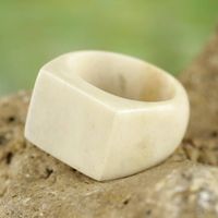 Bone Signet Ring with a Natural Finish from Ghana 'Quiet Grandeur' Item ID: 2676646571