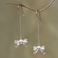 Bow-Shaped Sterling Silver Filigree Dangle Earrings 'Happy Bows' Item ID: 2671735416