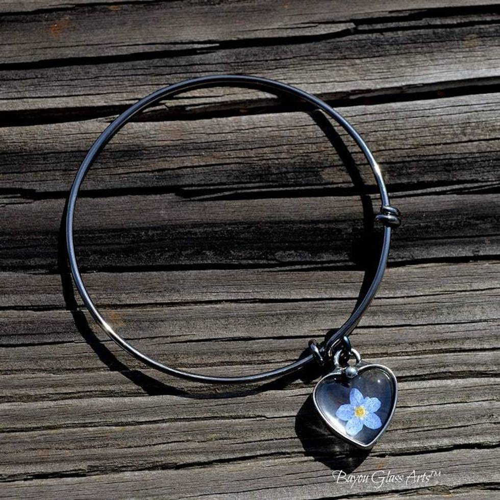 Bracelet, Forget-Me-Not Heart Charm, Real Pressed Flower Jewelry, Valentine's Day Gift for Her, Quality Glass not Resin Item ID: 2672230683