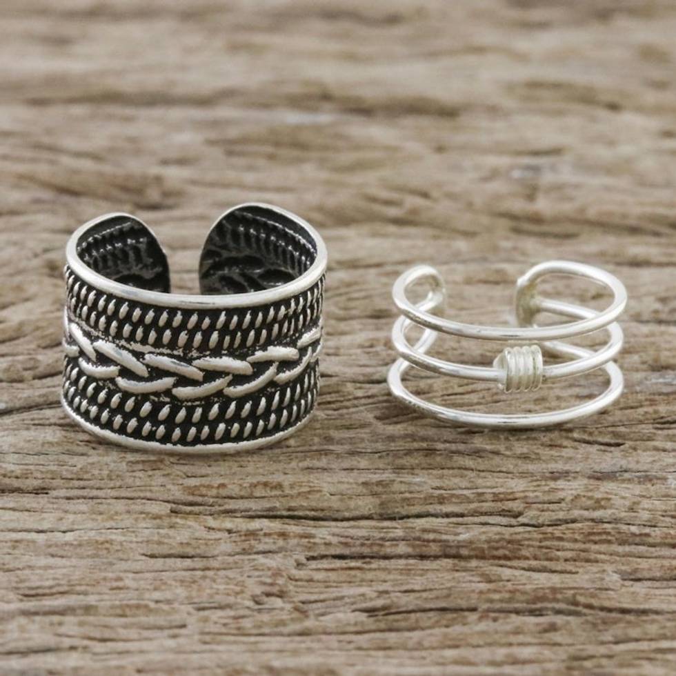 Braid Motif Sterling Silver Ear Cuffs from Thailand 'Ties That Bind' Item ID: 2669926048