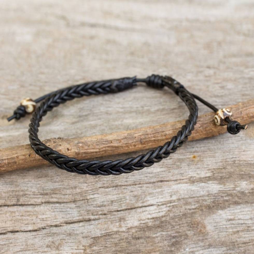 Braided Black Leather Mens Bracelet 'Single Black Braid' Item ID: 2669928446