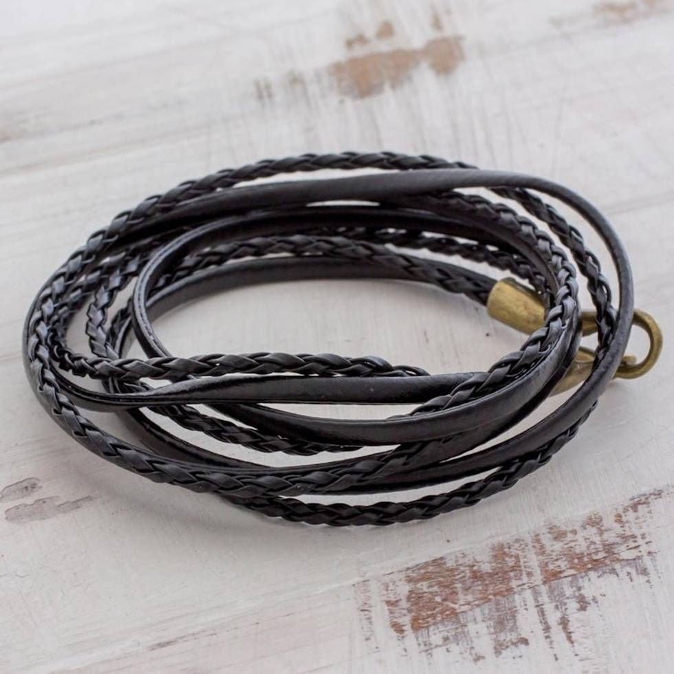 Braided Leather Wrap Bracelet in Black from Guatemala 'Elegance and Style in Black' Item ID: 2671778065