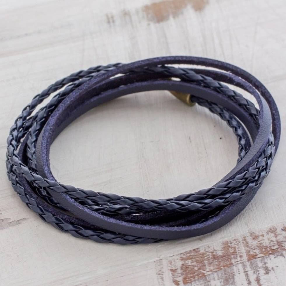 Braided Leather Wrap Bracelet in Blue from Guatemala 'Elegance and Style in Blue' Item ID: 2671780250