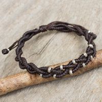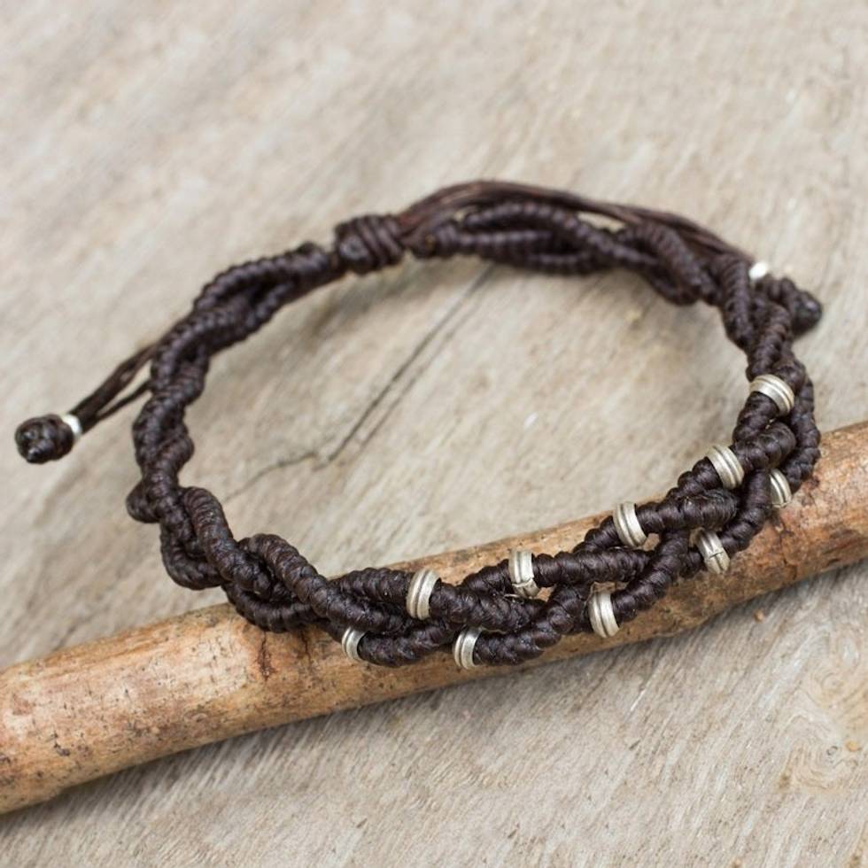 Braided Macrame Bracelet in Espresso Brown with Silver 950 'Brown Hill Tribe Bride' Item ID: 2671802455