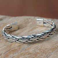 Braided Sterling Silver Cuff Bracelet from Bali 'Singaraja Weave' Item ID: 2669921469