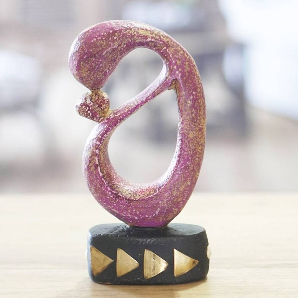 Brass-Accented Hand-Painted Mother and Child Wood Sculpture 'Sweet Bond' Item ID: 2671804079