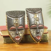 Brass Accented Wood Masks Handmade in Africa Pair 'Passport' Item ID: 2671807211