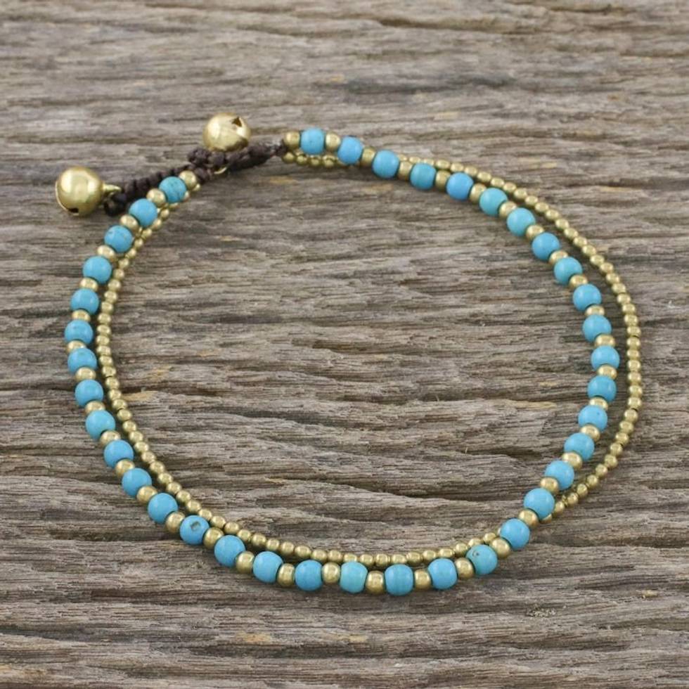 Brass and Calcite Beaded Anklet from Thailand 'Ringing Beauty' Item ID: 2669926160