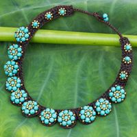 Brass and Calcite Hand Crocheted Necklace 'Daisy Melody' Item ID: 2671801984