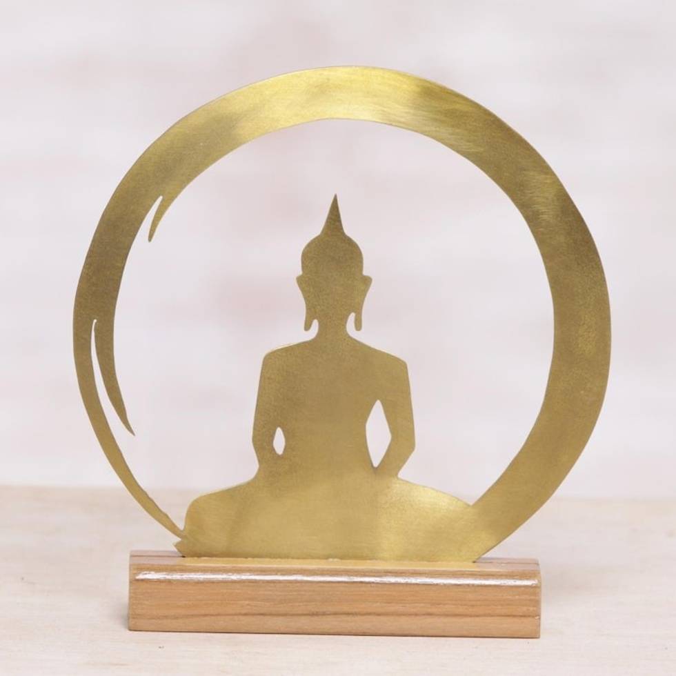 Brass and Teak Wood Silhouette Sculpture of Buddha 'Sitting Buddha Dome' Item ID: 2671734263