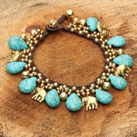 Brass Beaded Turquoise Colored Elephant Bracelet 'Siam Legacy' Item ID: 2671803154