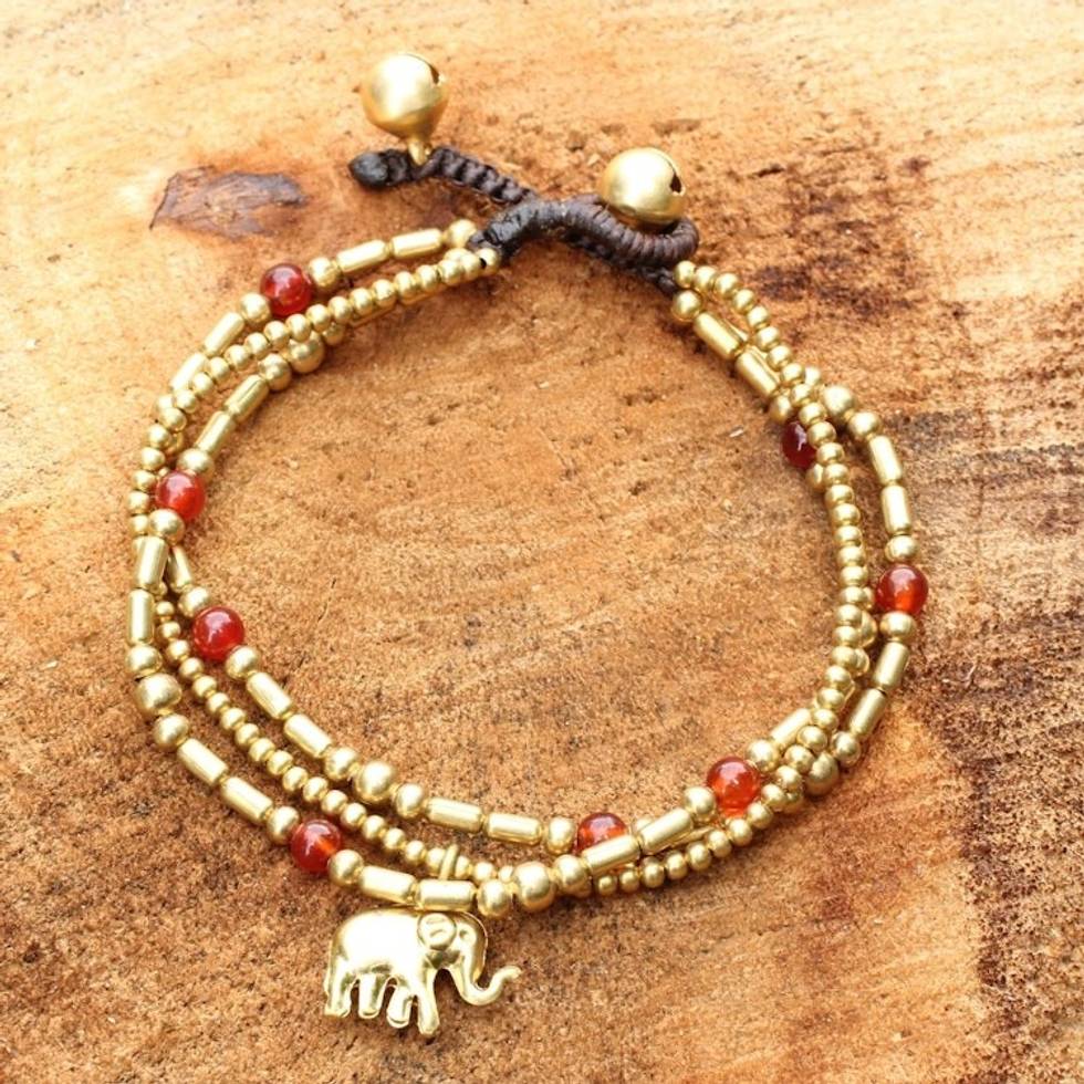 Brass Bracelet Carnelian Gems Beaded Jewelry 'Thai Elephant Charm' Item ID: 2671802775