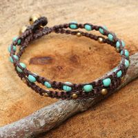 Brass Bracelet Turquoise-color Gems Braided Jewelry 'Aqua Boho Chic' Item ID: 2669929612
