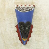 Brass Inlay Blue African Mask Hand Carved of Wood 'A Wealthy Man' Item ID: 2671803650