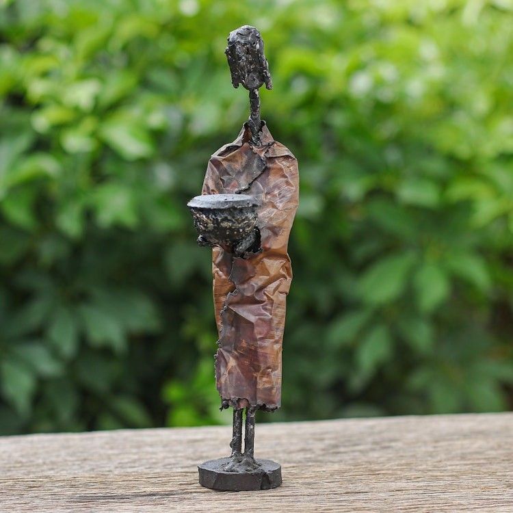 Brass Iron Statuette of Abstract Male Handmade in Thailand 'Ancient Monk' Item ID: 2671798177