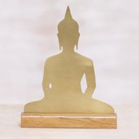 Brass Meditating Buddha Sculpture on Wood Base 'Sitting Buddha' Item ID: 2671734842