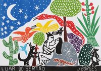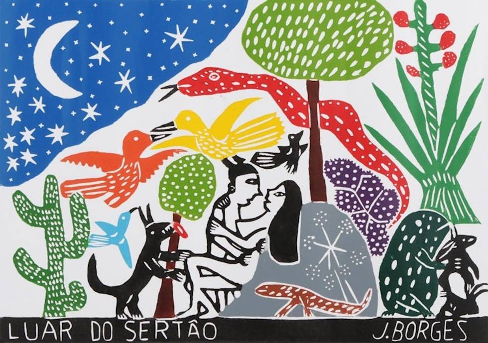 Brazil Eden Landscape Multicolor Woodcut Print by J. Borges 'Moon in the Back-Country' Item ID: 2671815928