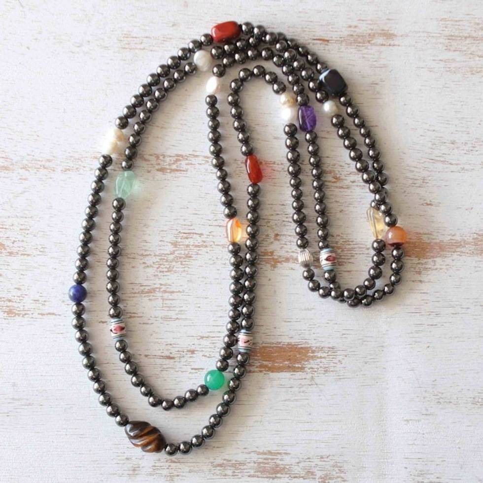 Brazilian Handcrafted Multi-Gemstone Long Beaded Necklace 'Glamorous Rainbow' Item ID: 2669935083
