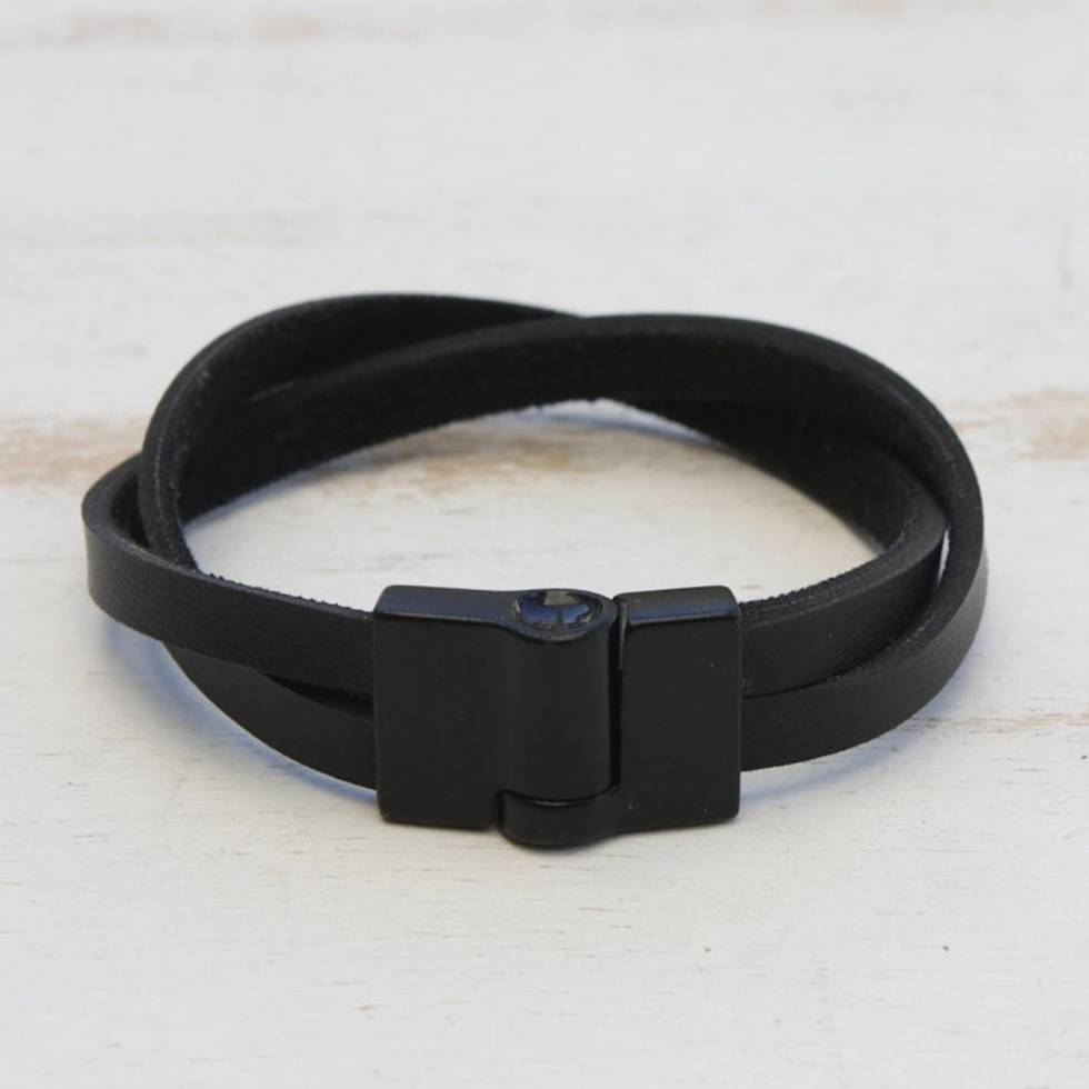 Brazilian Leather Wristband Bracelet for Men 'Determination in Black' Item ID: 2669935468