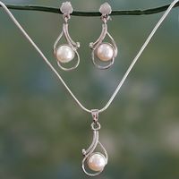 Bridal Pearl Jewelry Set Sterling Silver Necklace Earrings 'Lunar Magic' Item ID: 2671794970