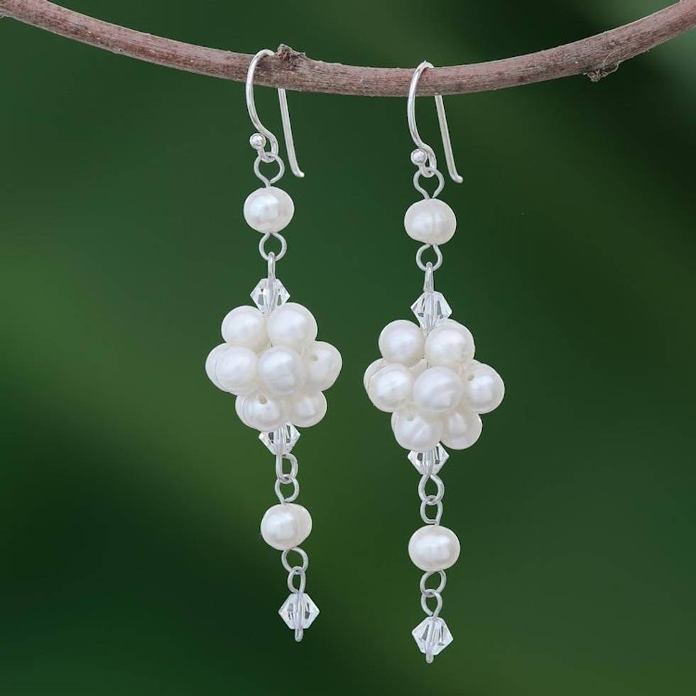 Bridal Sterling Silver and Pearl Dangle Earrings 'Enchanted Bloom' Item ID: 2671802861