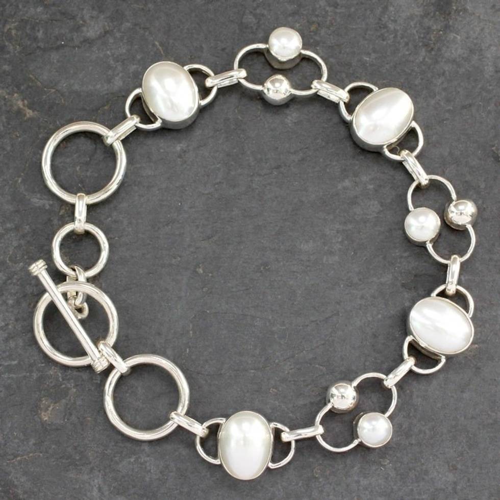Bridal Sterling Silver Link Pearl Bracelet from India 'Bliss' Item ID: 2671794546