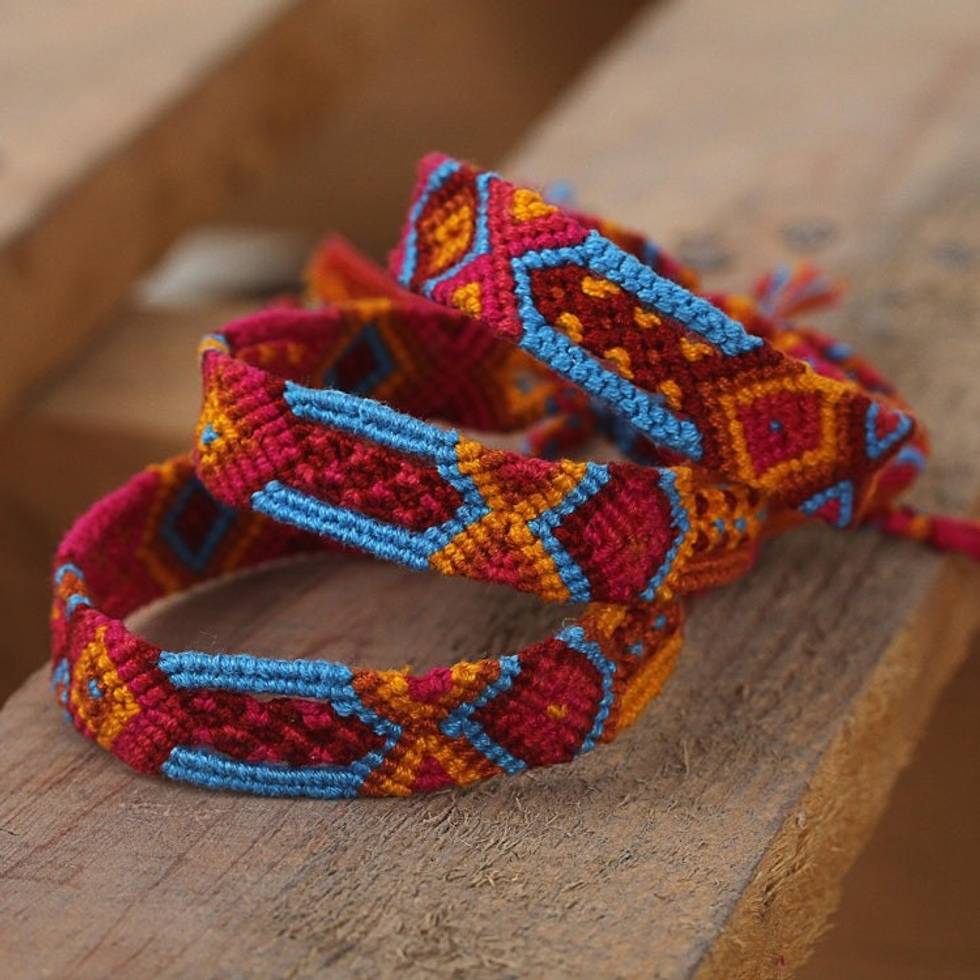 Bright Cotton Wristband Bracelet from Mexico Set of 3 'Forever Friends' Item ID: 2669926809