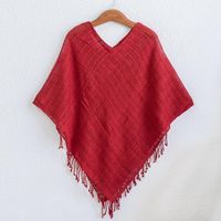 Bright Red Open Weave Cotton Poncho 'Fresh Chili' Item ID: 2671777048
