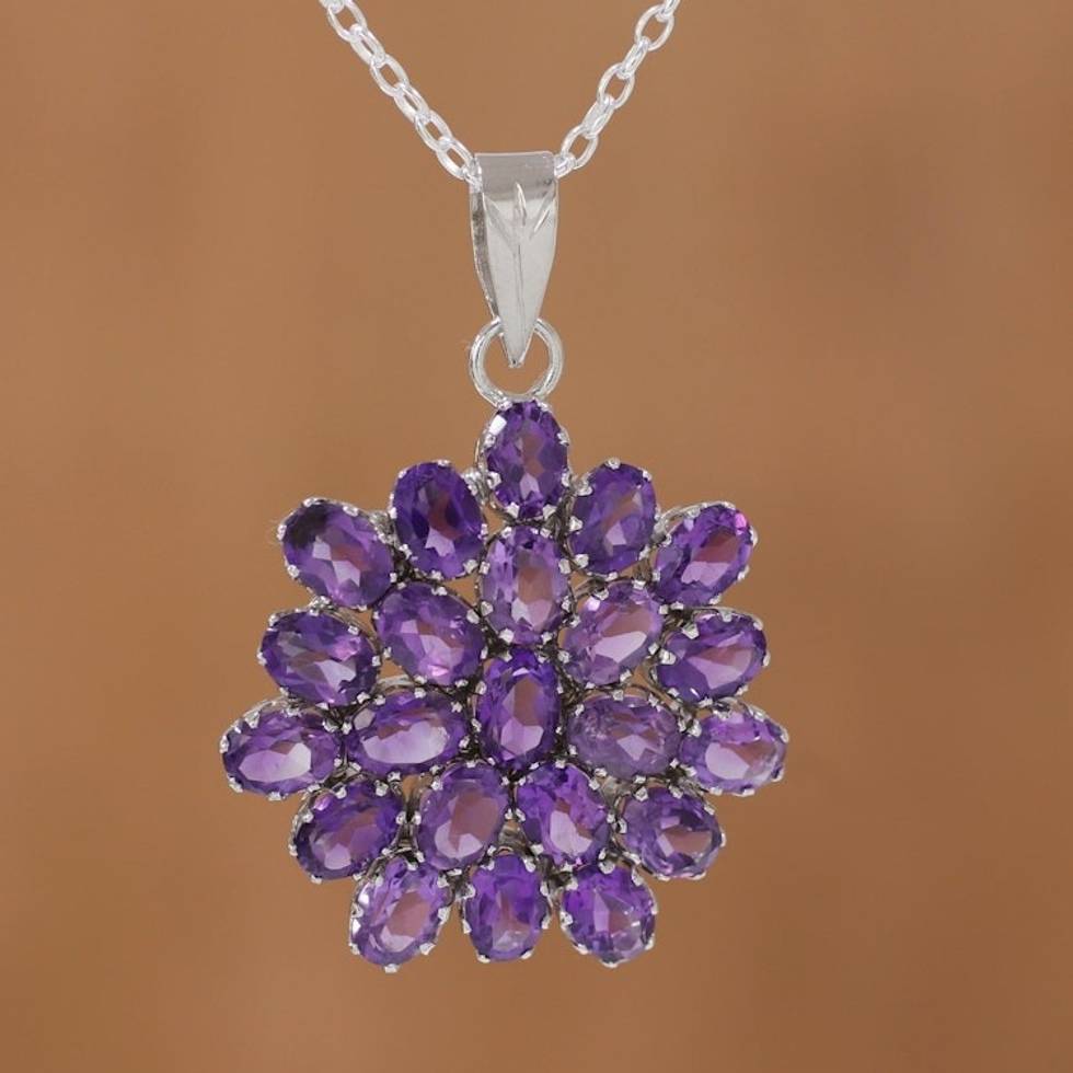 Brilliant 22 Carat Amethyst Pendant Necklace 'Purple Camellia' Item ID: 2671620153