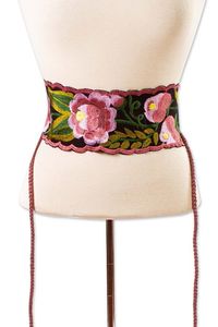 Broad Cotton Hand Woven Wrap Belt with Flowers Chiapas 'Flower Wrap' Item ID: 2669926950