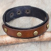 Brown and Black Leather Wristband Bracelet from Thailand 'Rustic Elements' Item ID: 2671641055