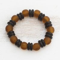 Brown and Black Recycled Glass Beaded Stretch Bracelet 'Alternating Discs' Item ID: 2671805978