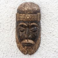 Brown and Gold-Tone African Wood Mask from Ghana 'Bearded Nii Amugi' Item ID: 2671805607