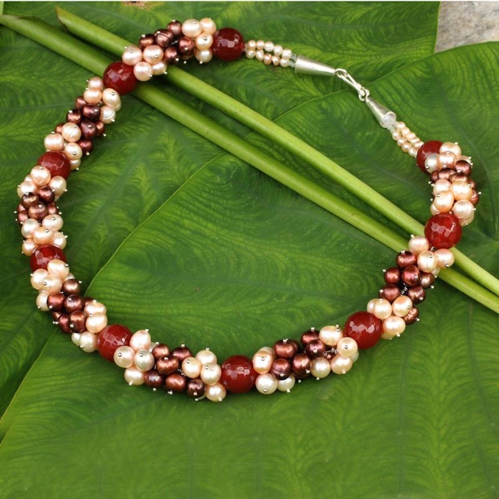 Brown and Peach Pearls with Orange Chalcedony Necklace 'Divine Feminine' Item ID: 2671802691
