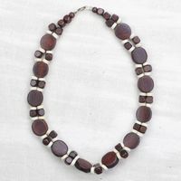 Brown and White Wood Beaded Necklace from Ghana 'Guidance' Item ID: 2671803718