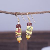 Brown and Yellow Recycled Glass Beaded Dangle Earrings 'Ghana's Colors' Item ID: 2671803966