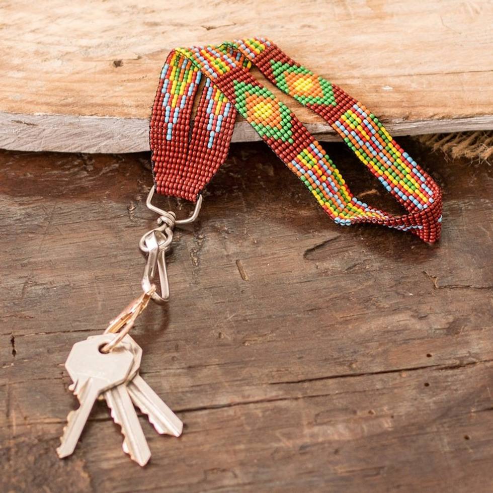 Brown Beaded Lanyard Keychain Holder Handmade in Guatemala 'Handy and Lovely' Item ID: 2671769266