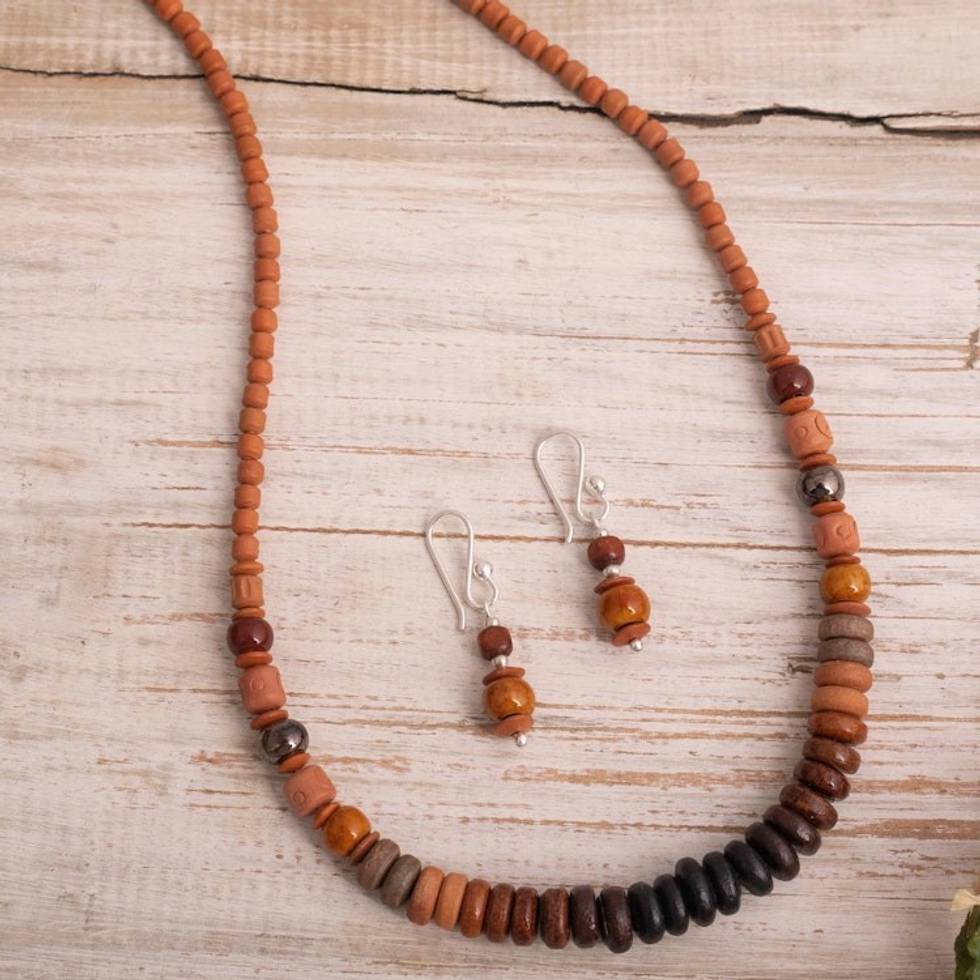 Brown Ceramic Beaded Necklace and Earring Set from Peru 'Cusco Dreams' Item ID: 2671820356