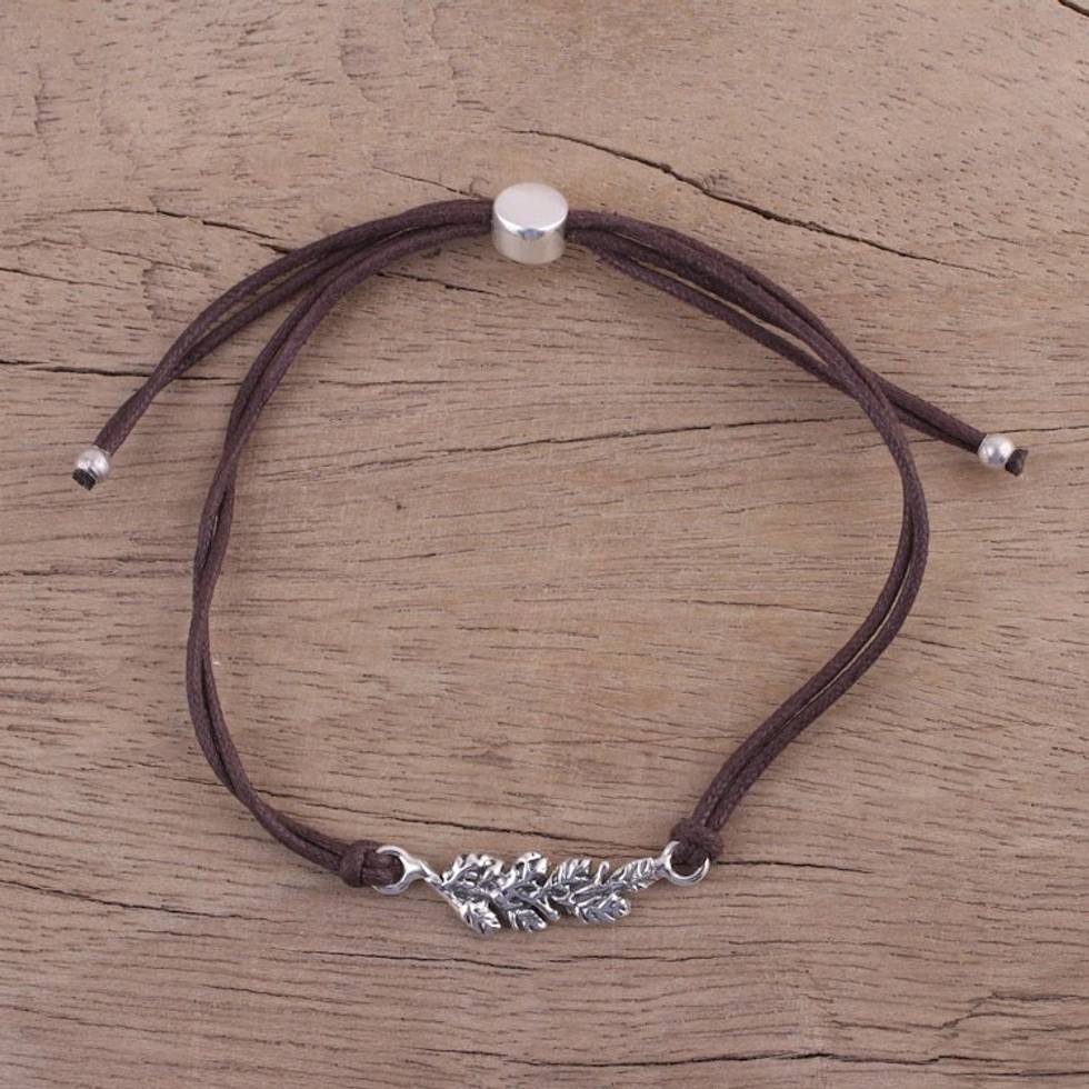Brown Cotton Cord Bracelet with Sterling Silver Leaves 'Brown Leaves in Winter' Item ID: 2671790192